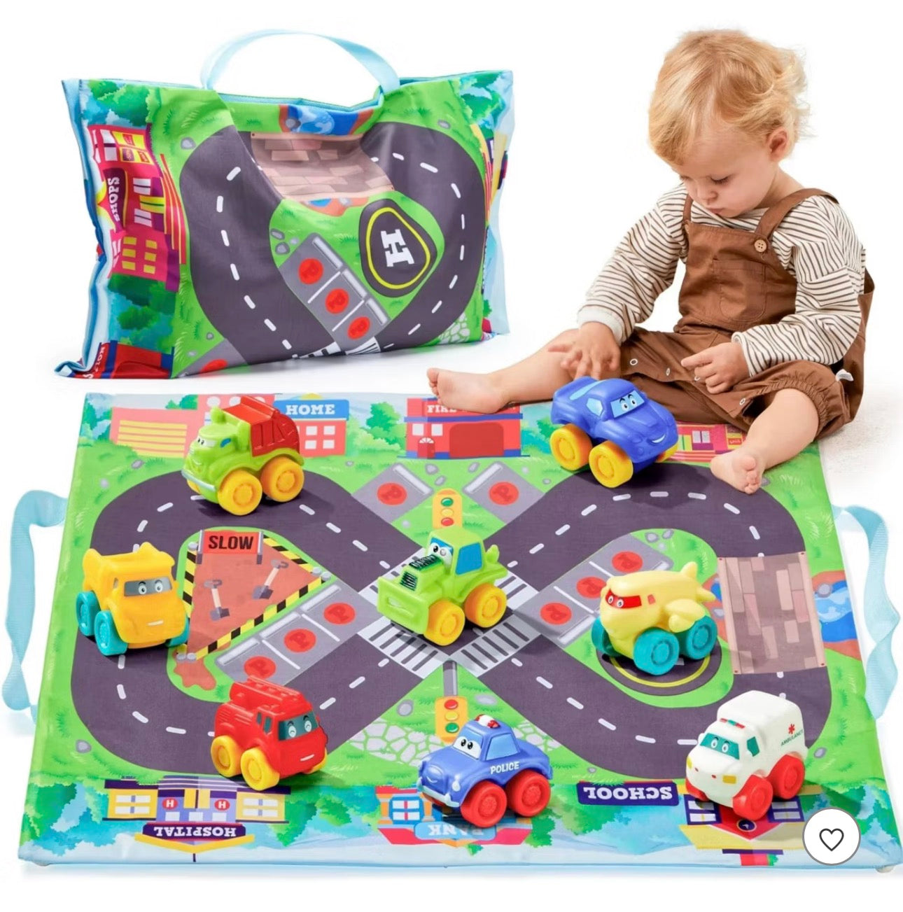 8 PCS Rubber Cartoon Cars with Play Mat, Mini Bath Toy Car for Toddlers, Boy Toys Birthday Gift, Party Favors for Kids Toddlers 2 3+ Year Old