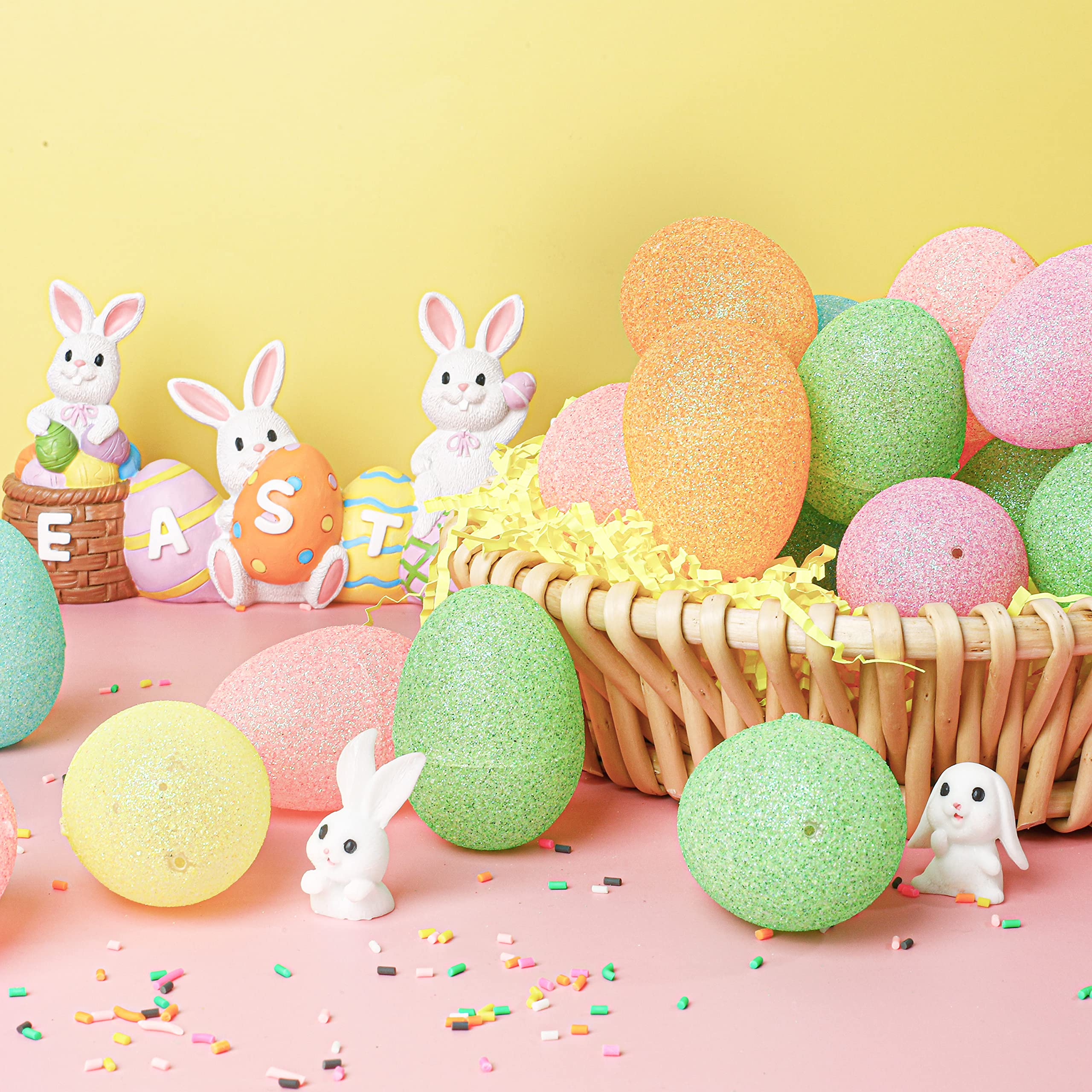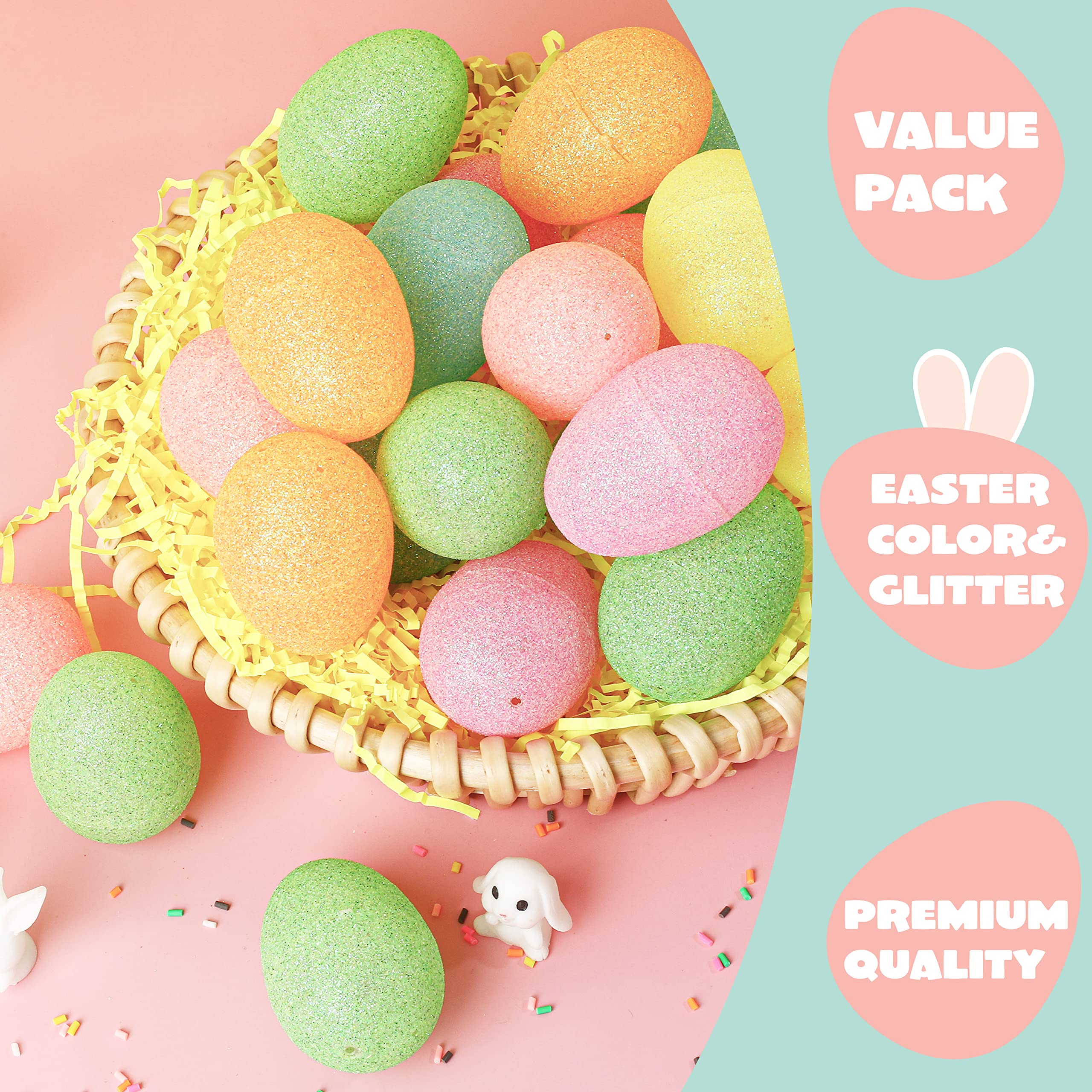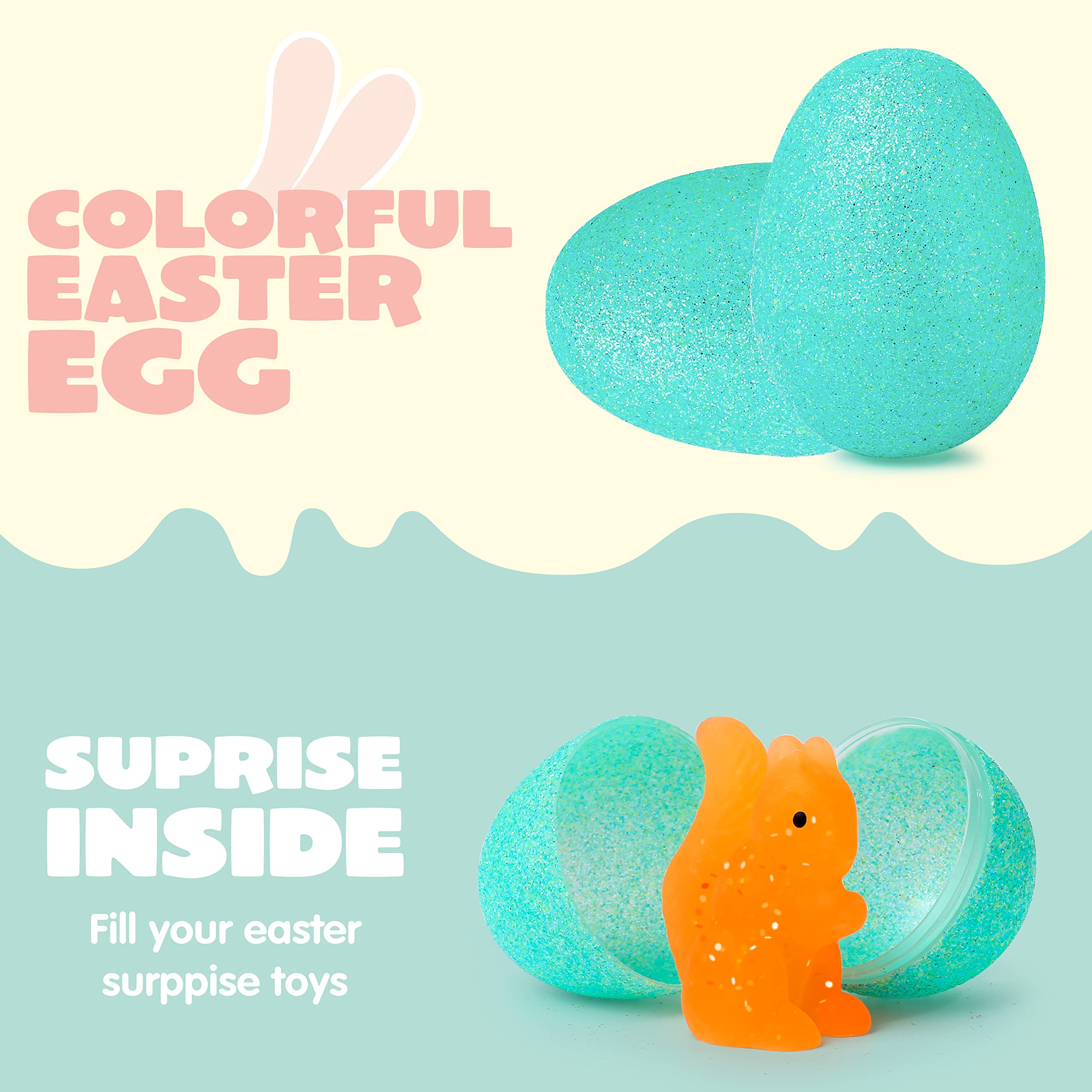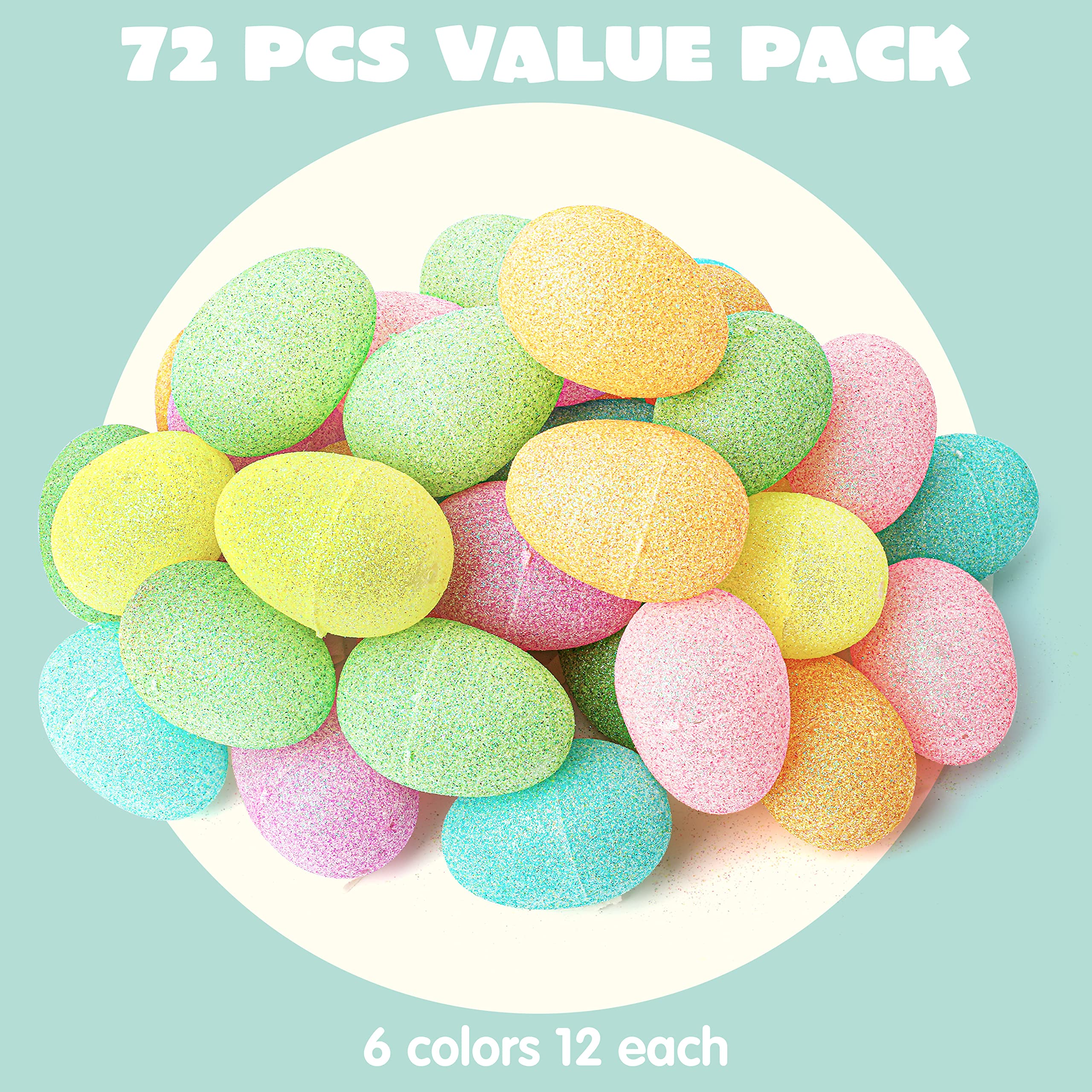 72 Pcs 2.5" Glitter Pastel Assorted Plastic Easter Eggs, Fillable Shells