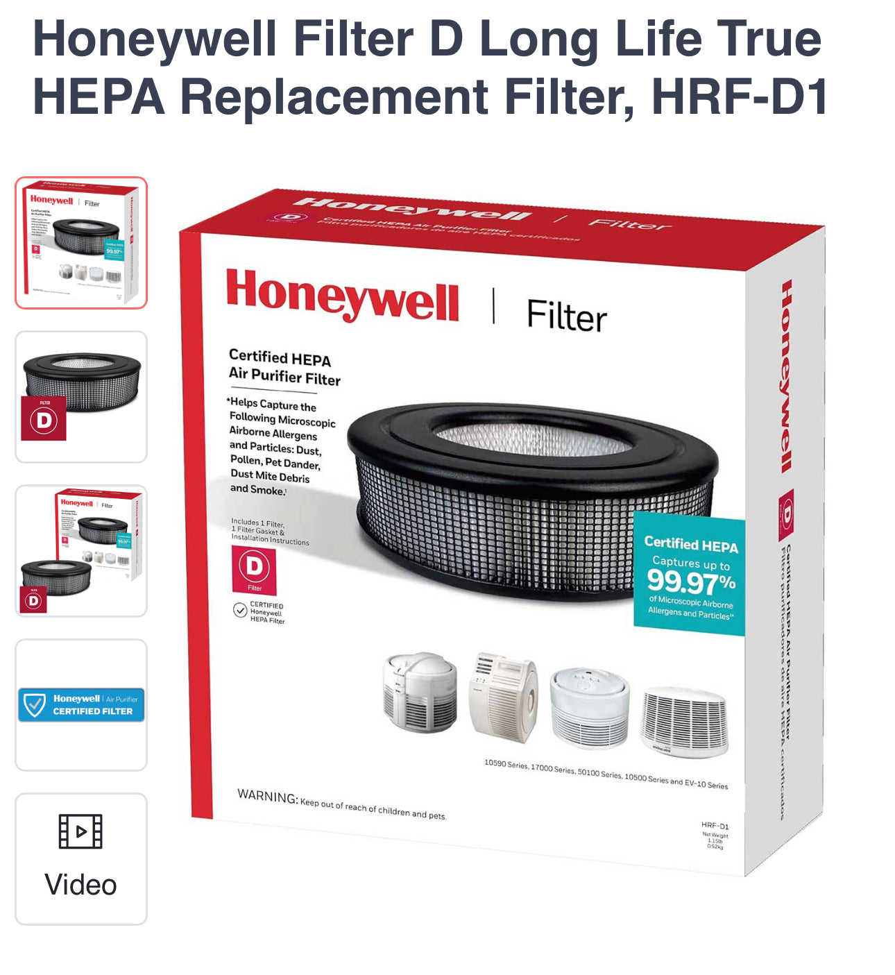 Honeywell Filter D Long Life True HEPA Replacement Filter, HRF-D1
