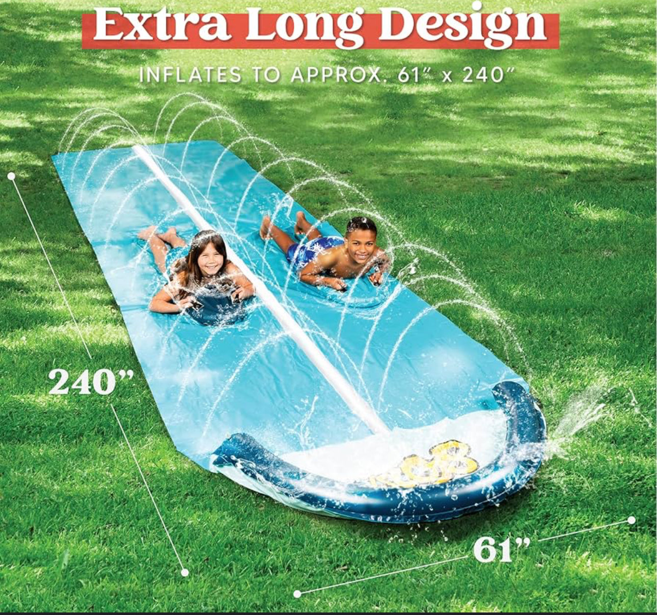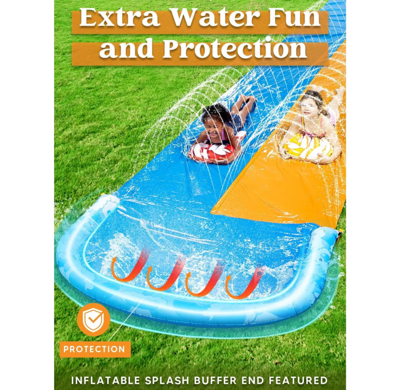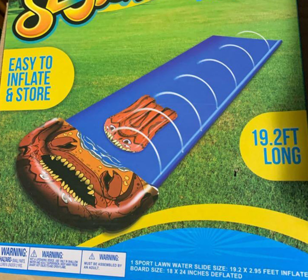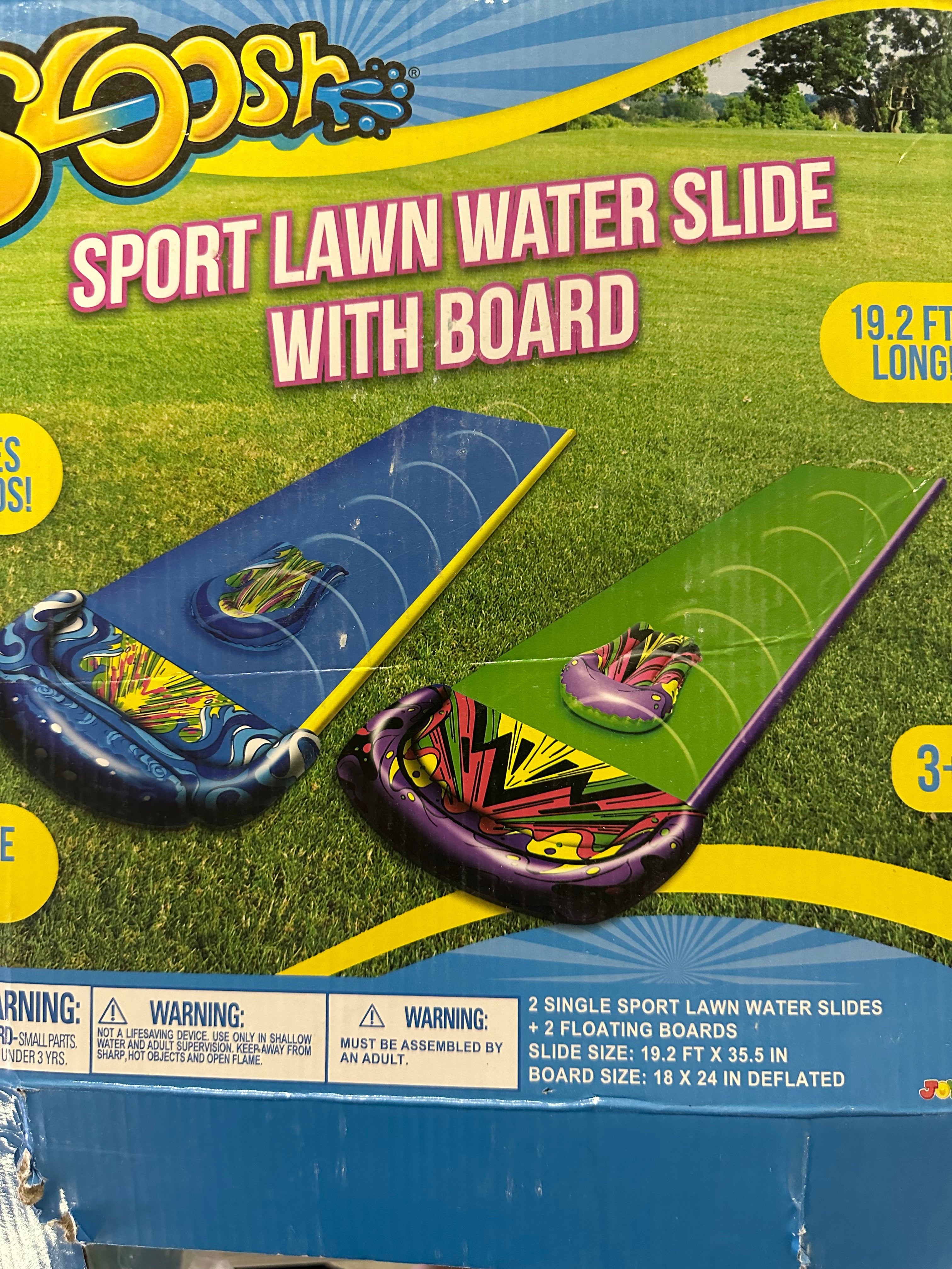 Wave riders 22.5 foot yard waterslide with two bodyboards slip and slide.