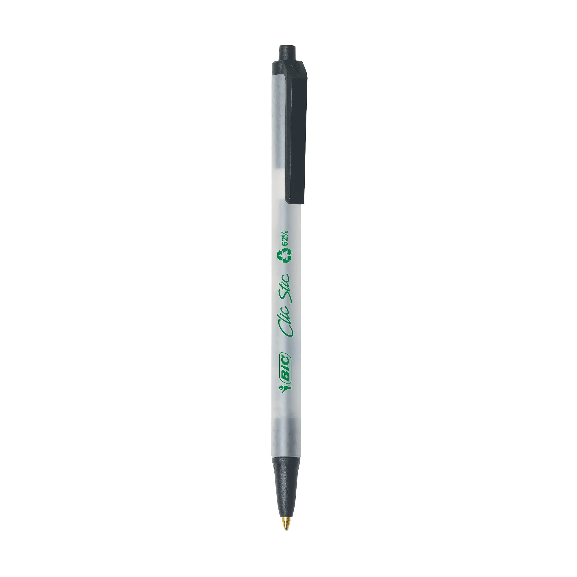 BIC® ReVolution Clic Stic Retractable Ball Pens, Medium Point, 1.0 mm, 62% Recycled, Semi-Clear Barrel, Black Ink, Pack