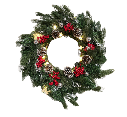 22" Joyin Pre-lit lightly flocked Christmas / HolidAY Wreath with berries and pine cones