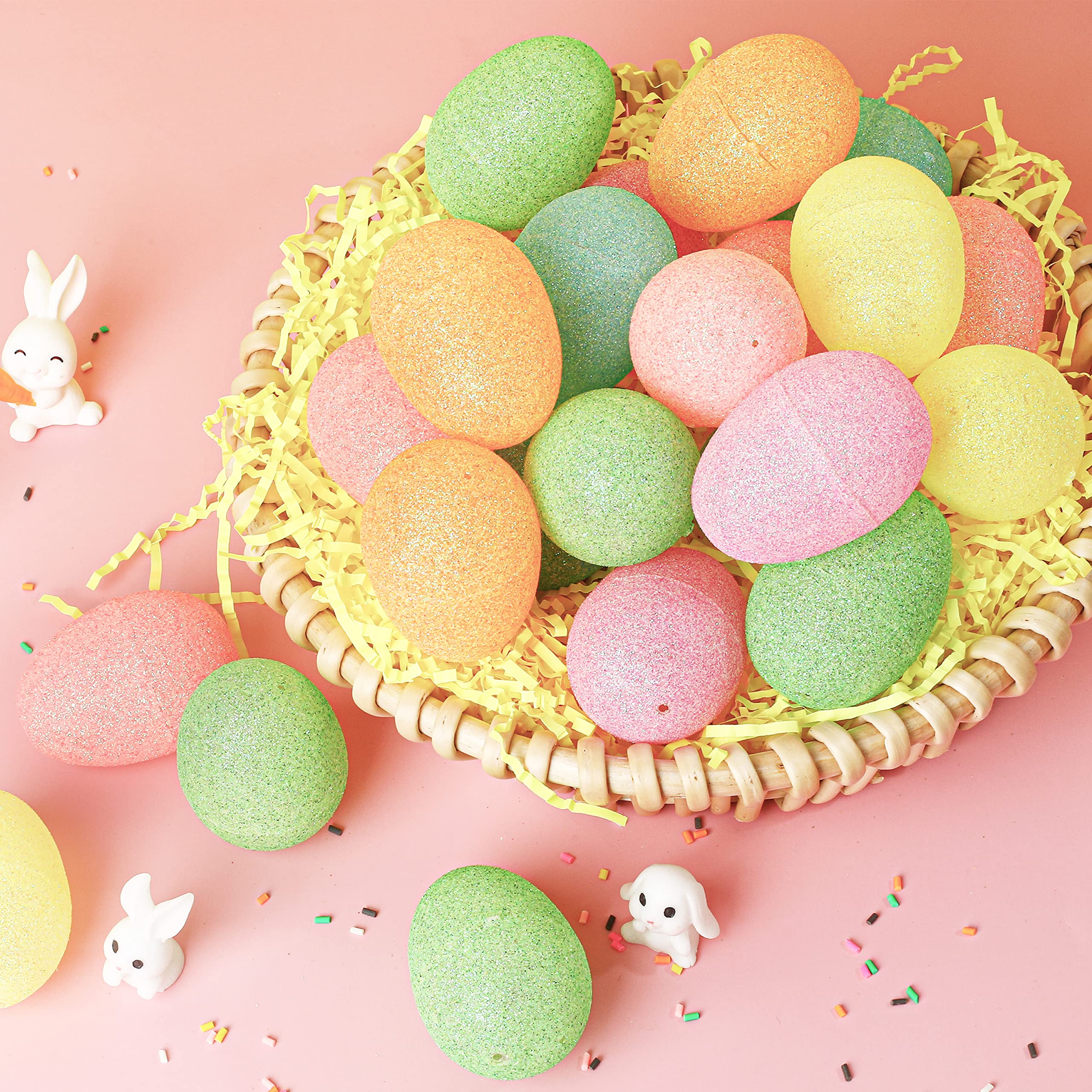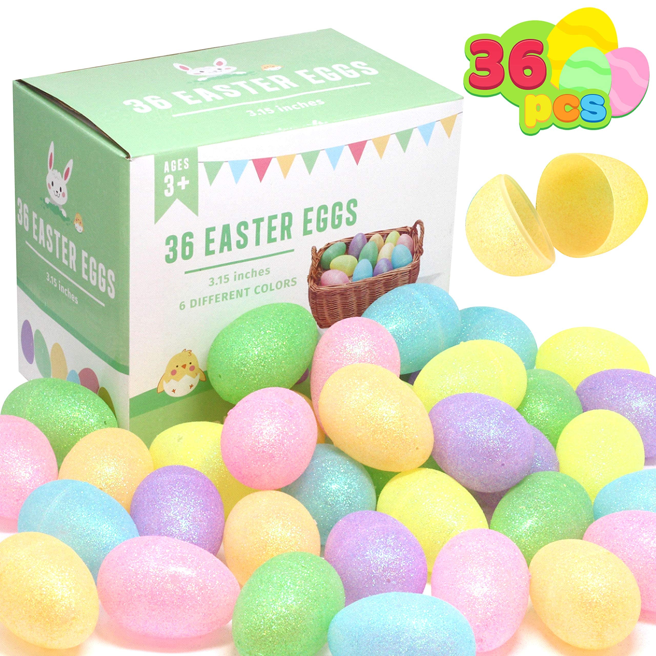 36 Pcs 3.15" Glittering Colorful Assortment Fillable Easter Egg Shell