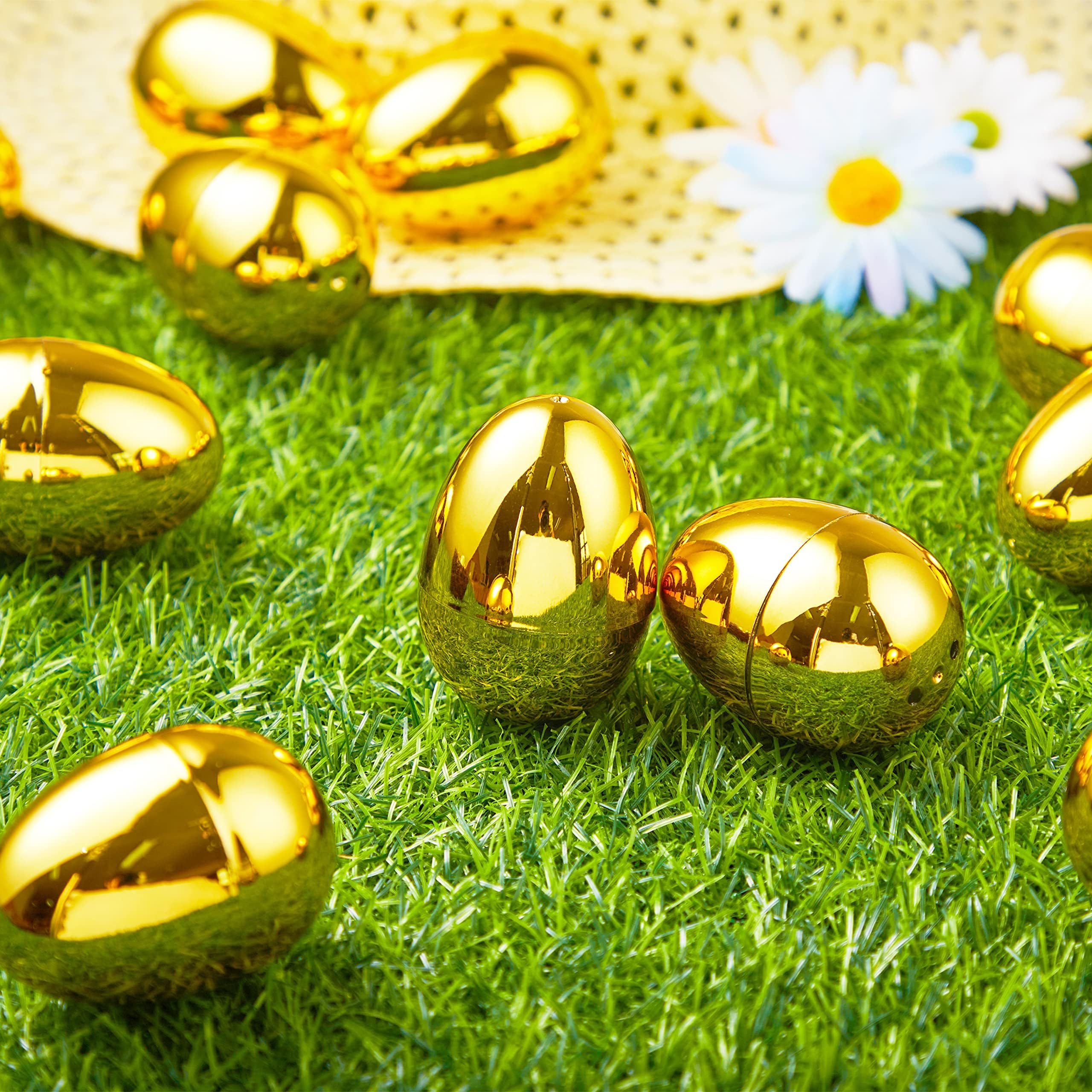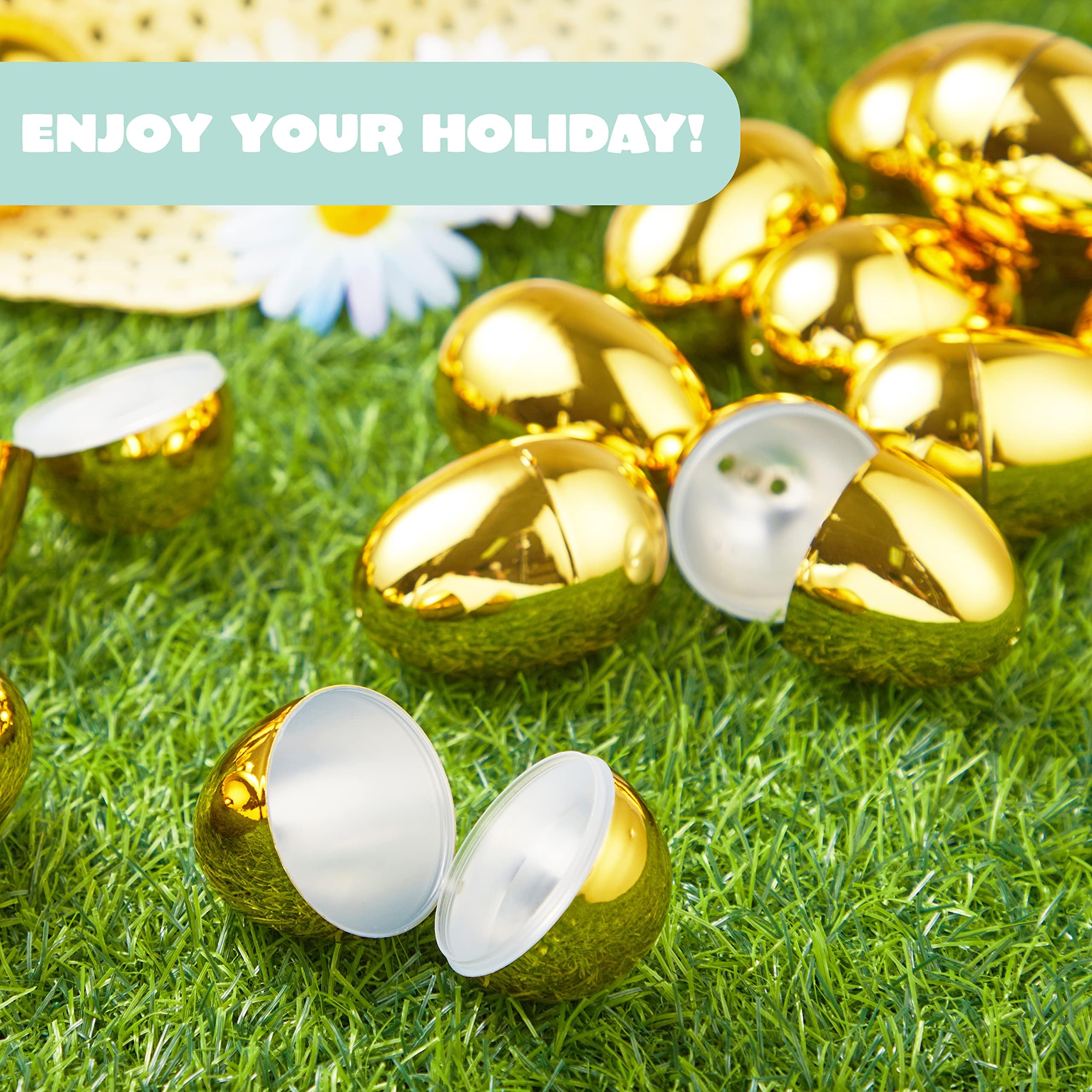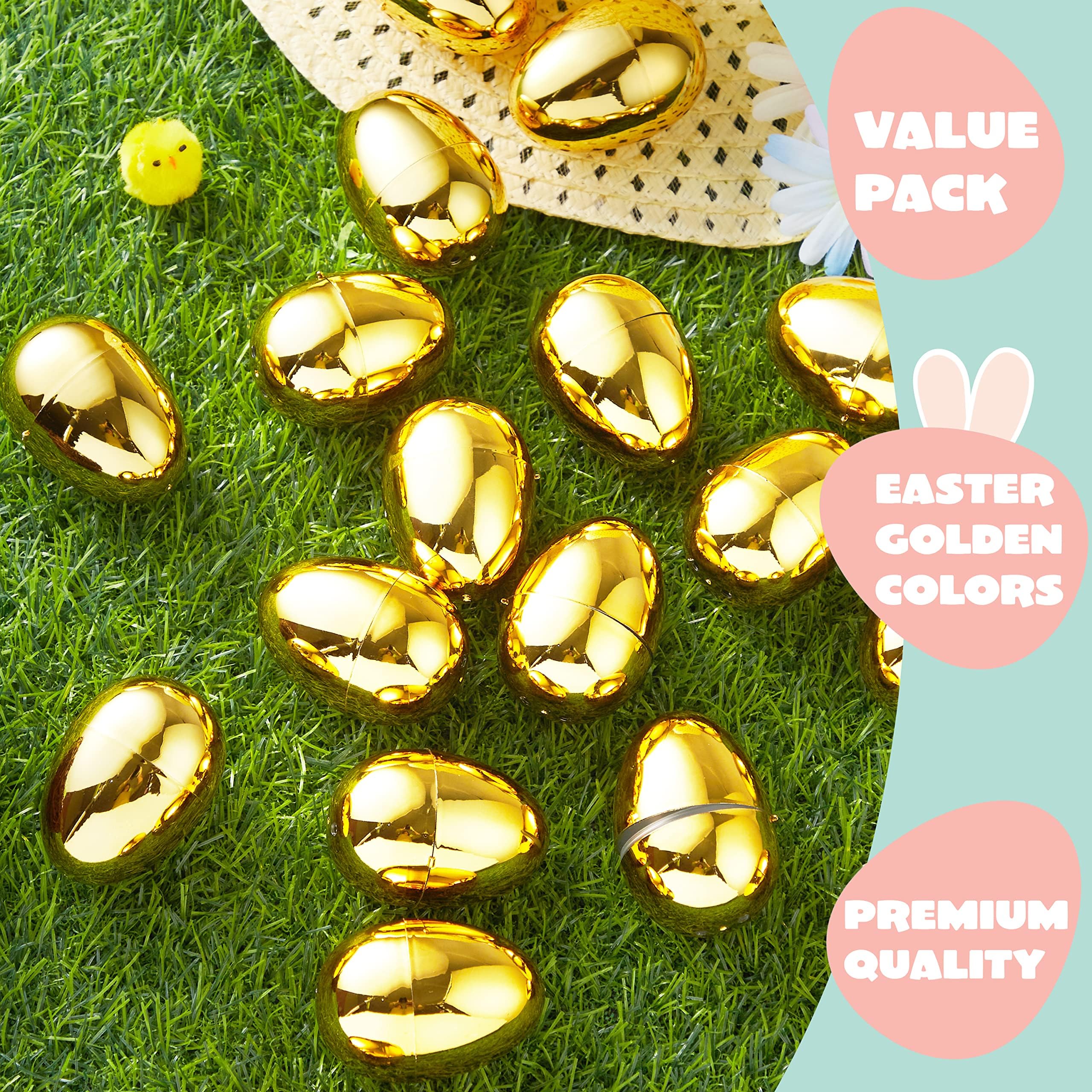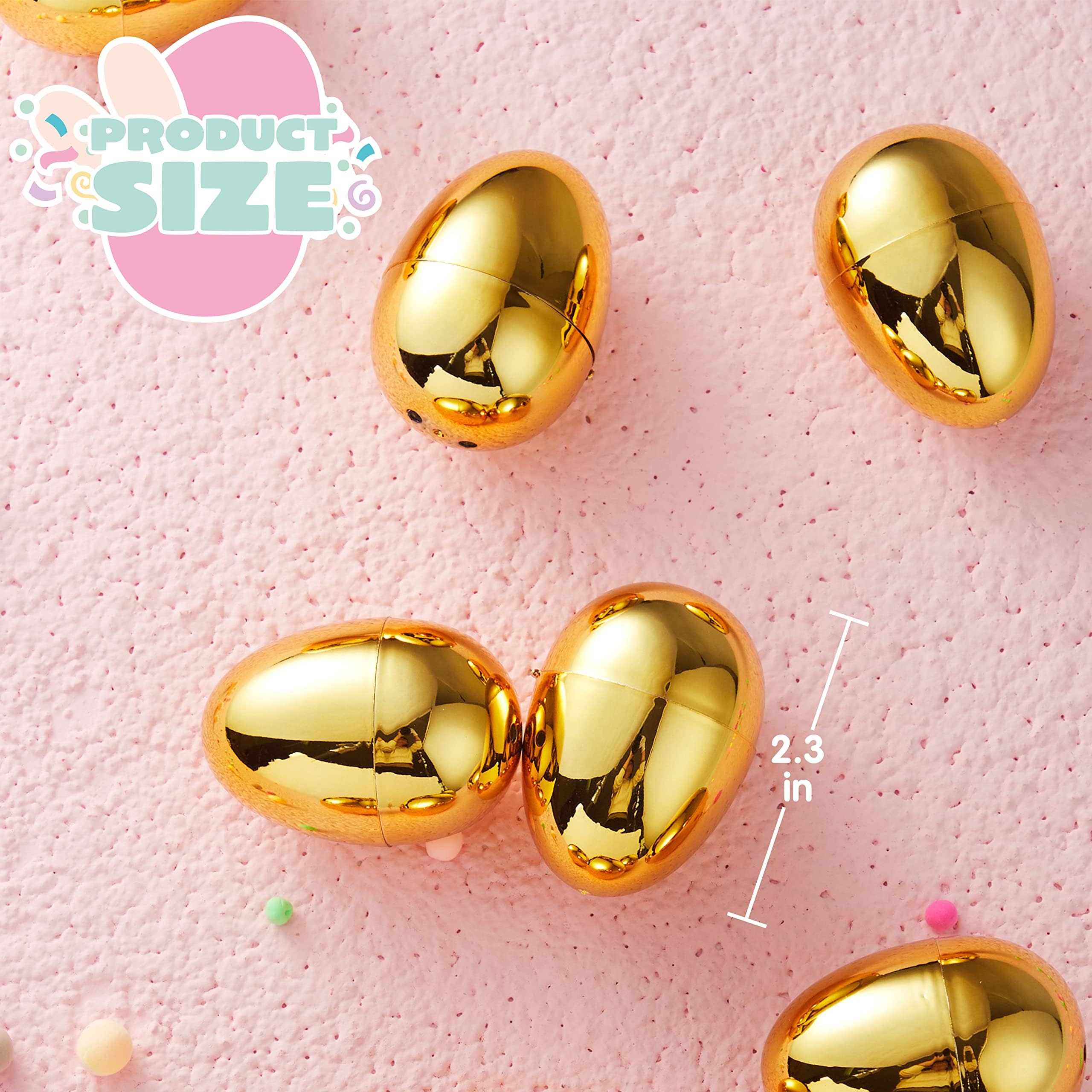 36 Pieces Shiny Golden Metallic Easter Eggs Jumbo Size Gold Color Plastic for Filling Specific Treats, Easter Theme Party Favor, Easter Eggs Hunt, Basket Filler, Classroom Prize Supplies by Joyin Toy