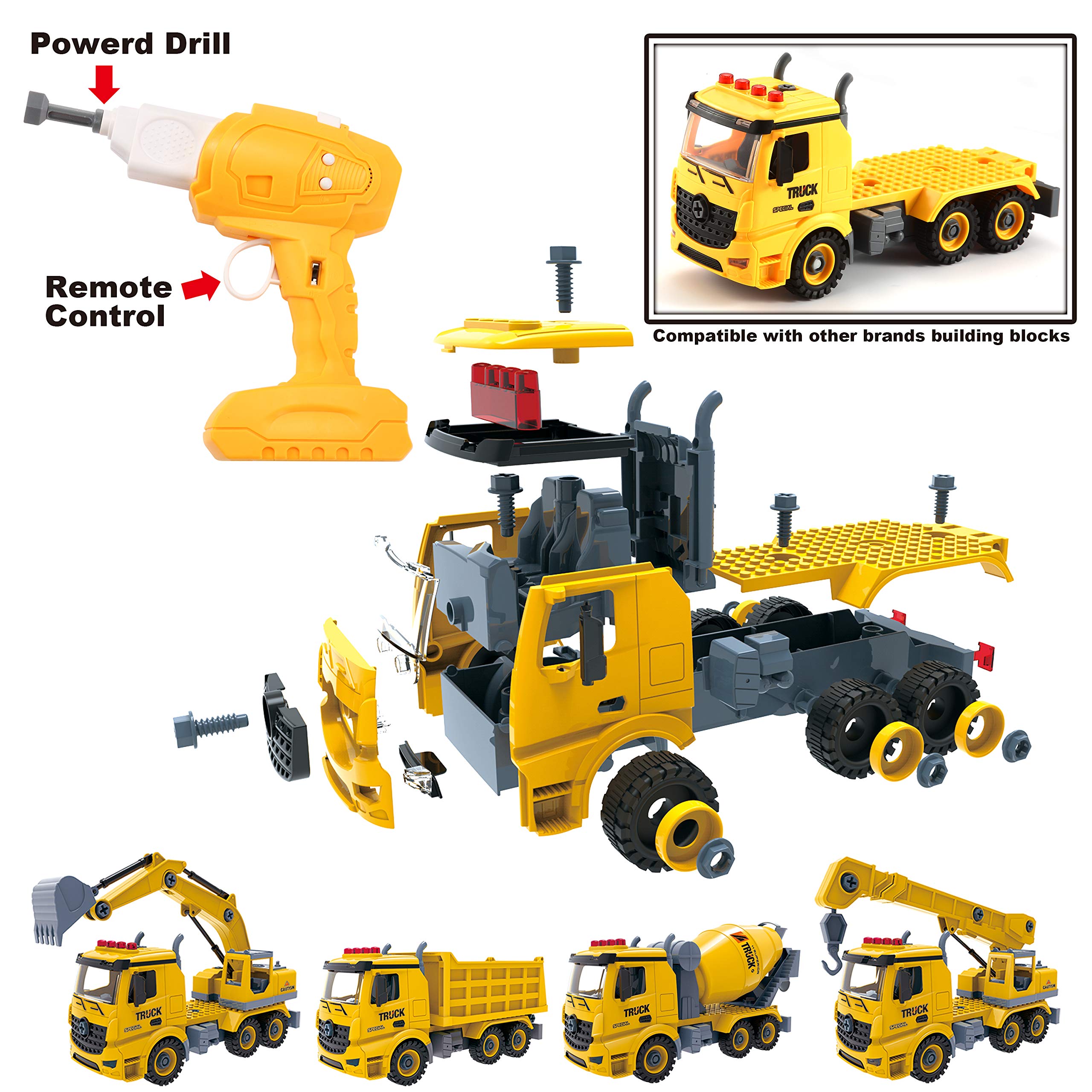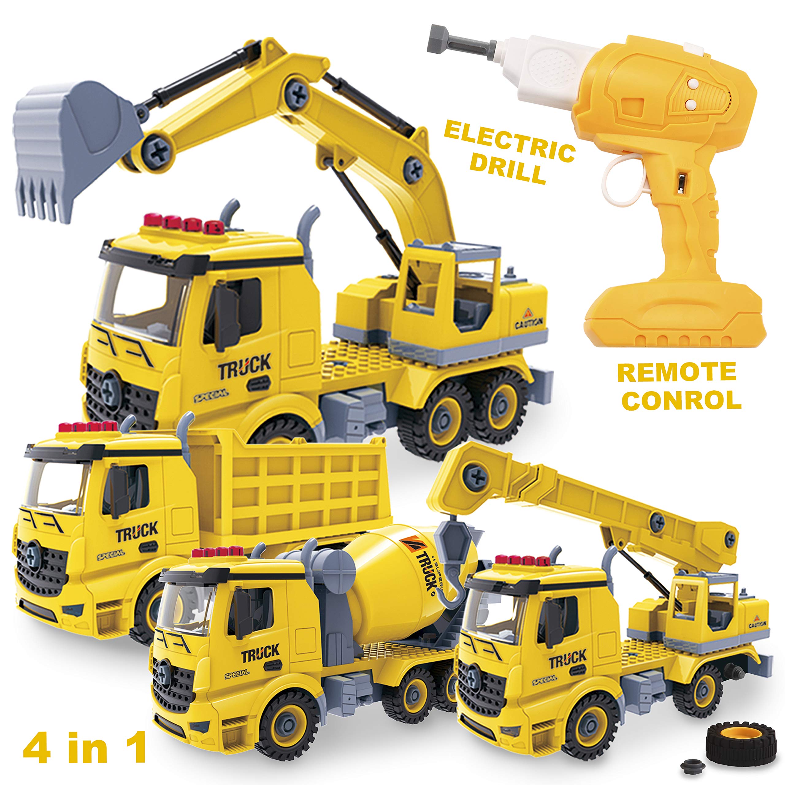 This 4-in-1 Remote Control Construction Truck Take Apart Toys with Lights and Sounds for Pretend Play Set, Imaginative Play, Classroom Prizes, City Vehicles