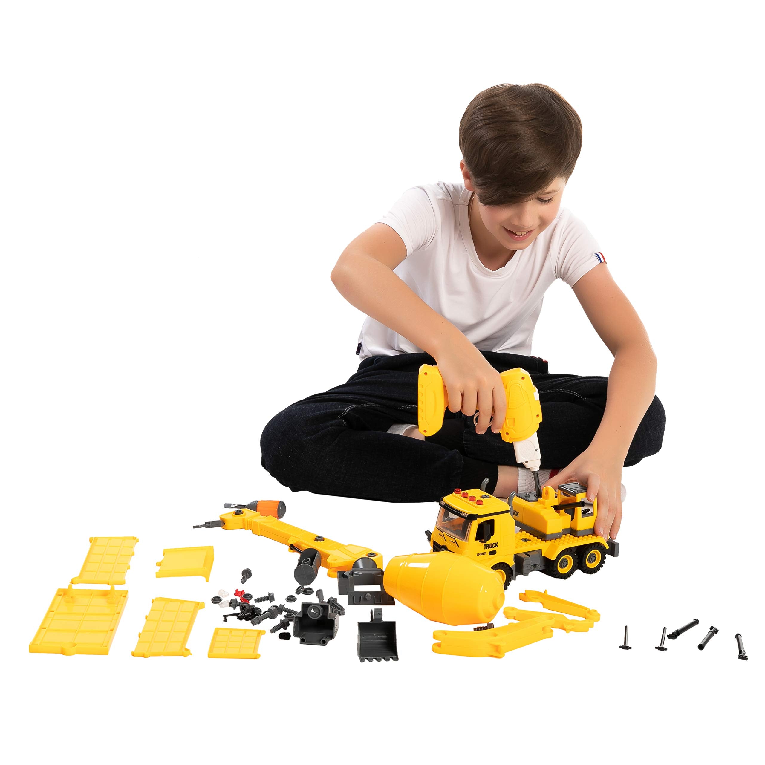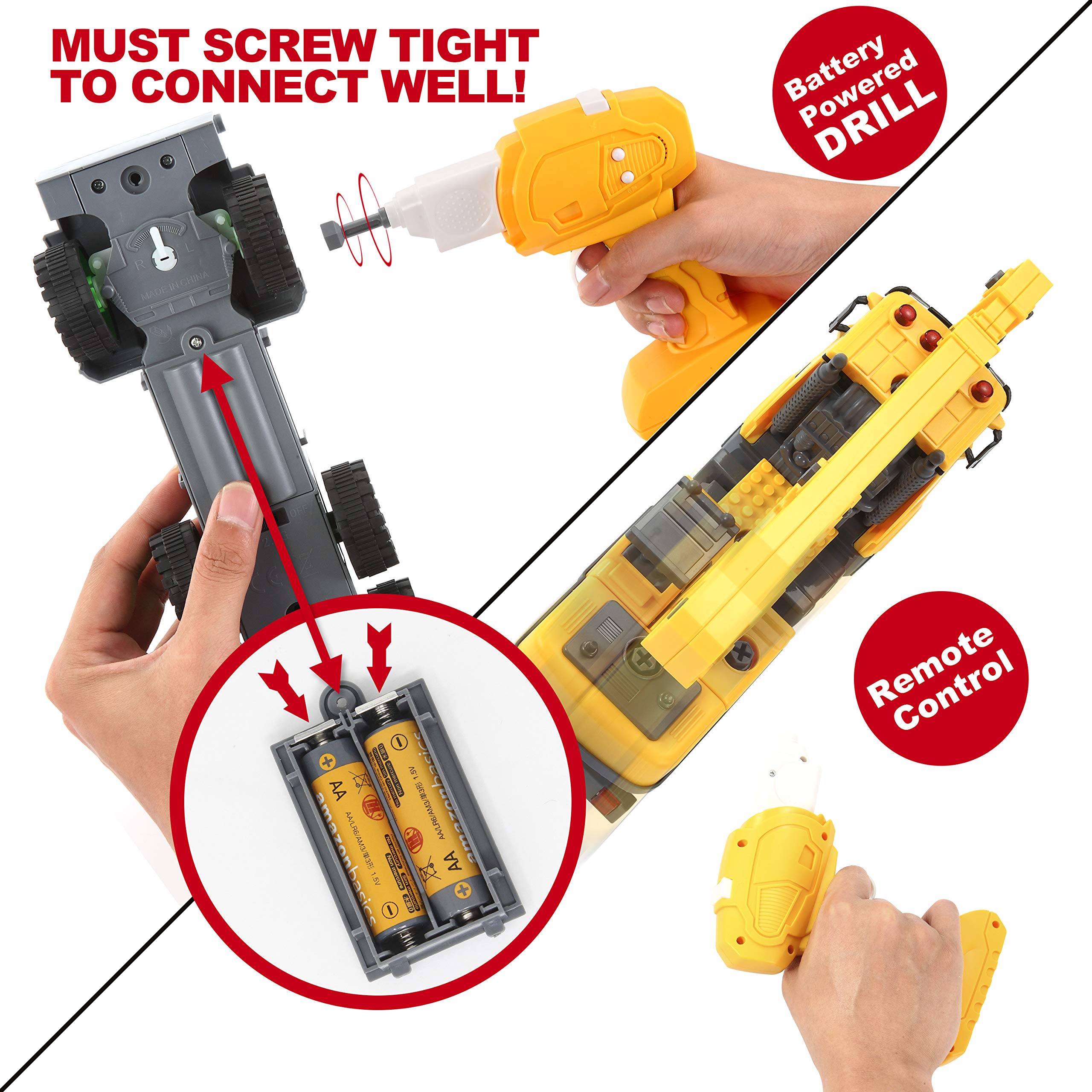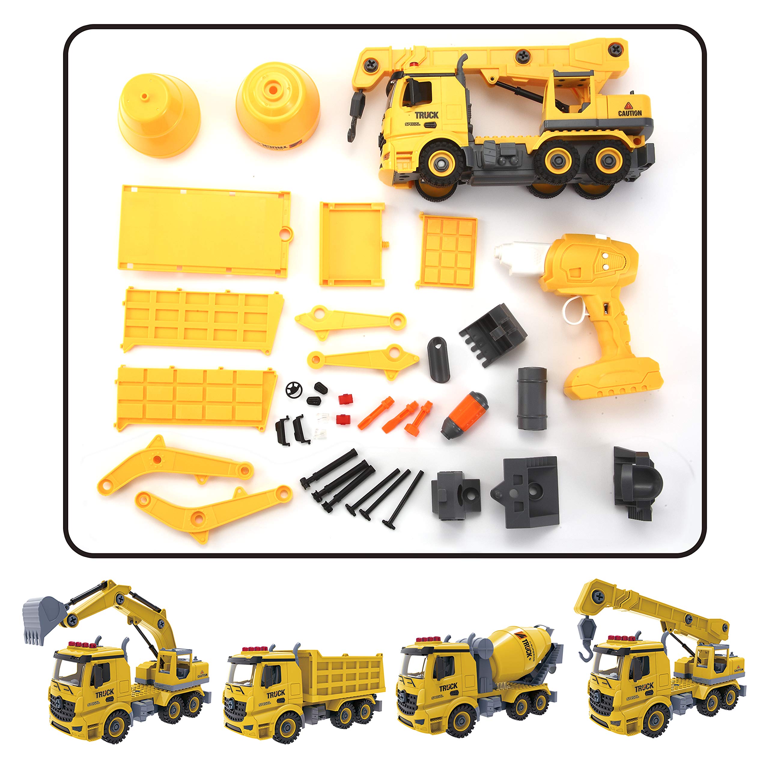 SUPER VALUE SET. Our construction truck toys includes 1 drill toy which you can use to transform the toys into four different types. The toy has realistic lights and sound and has friction powered wheels.
