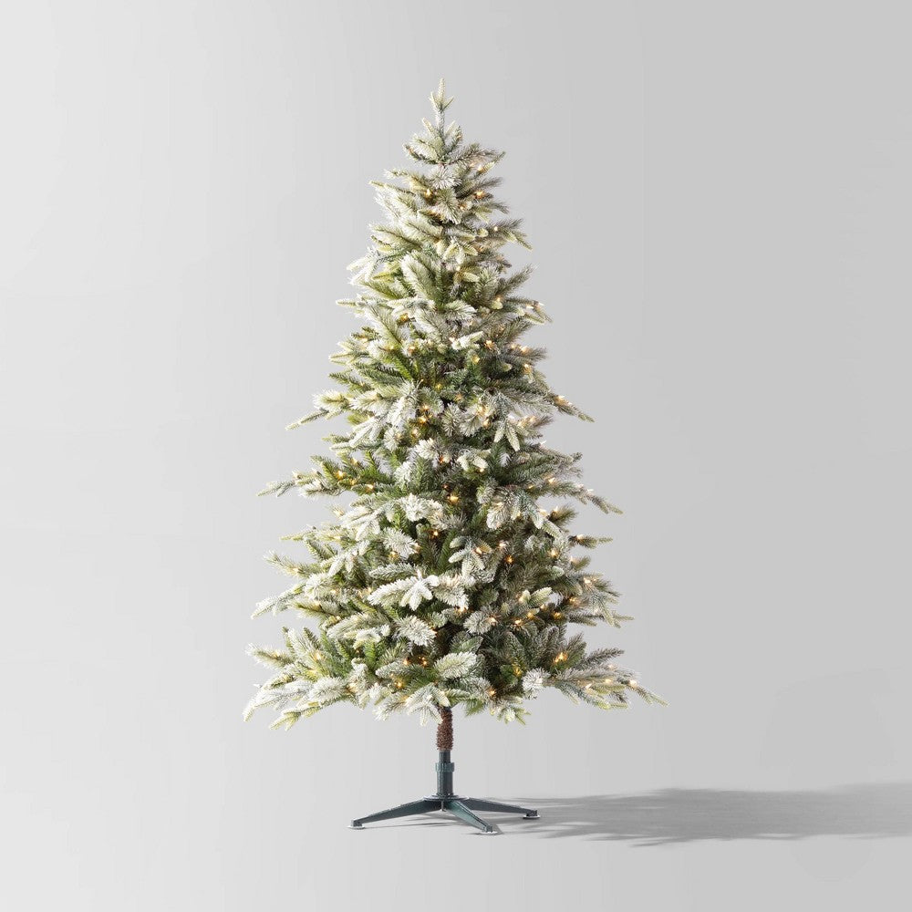 6.5' Pre-Lit Indexed Flocked Glittered Balsam Fir Artificial Christmas Tree Clear Lights - Wondershop™