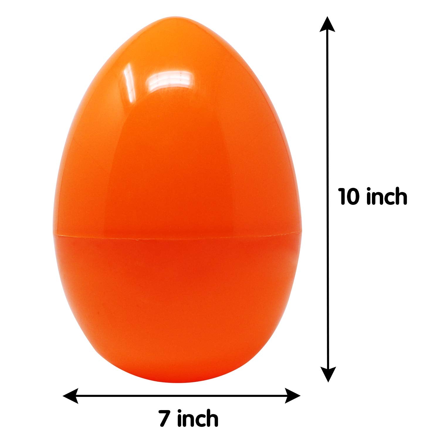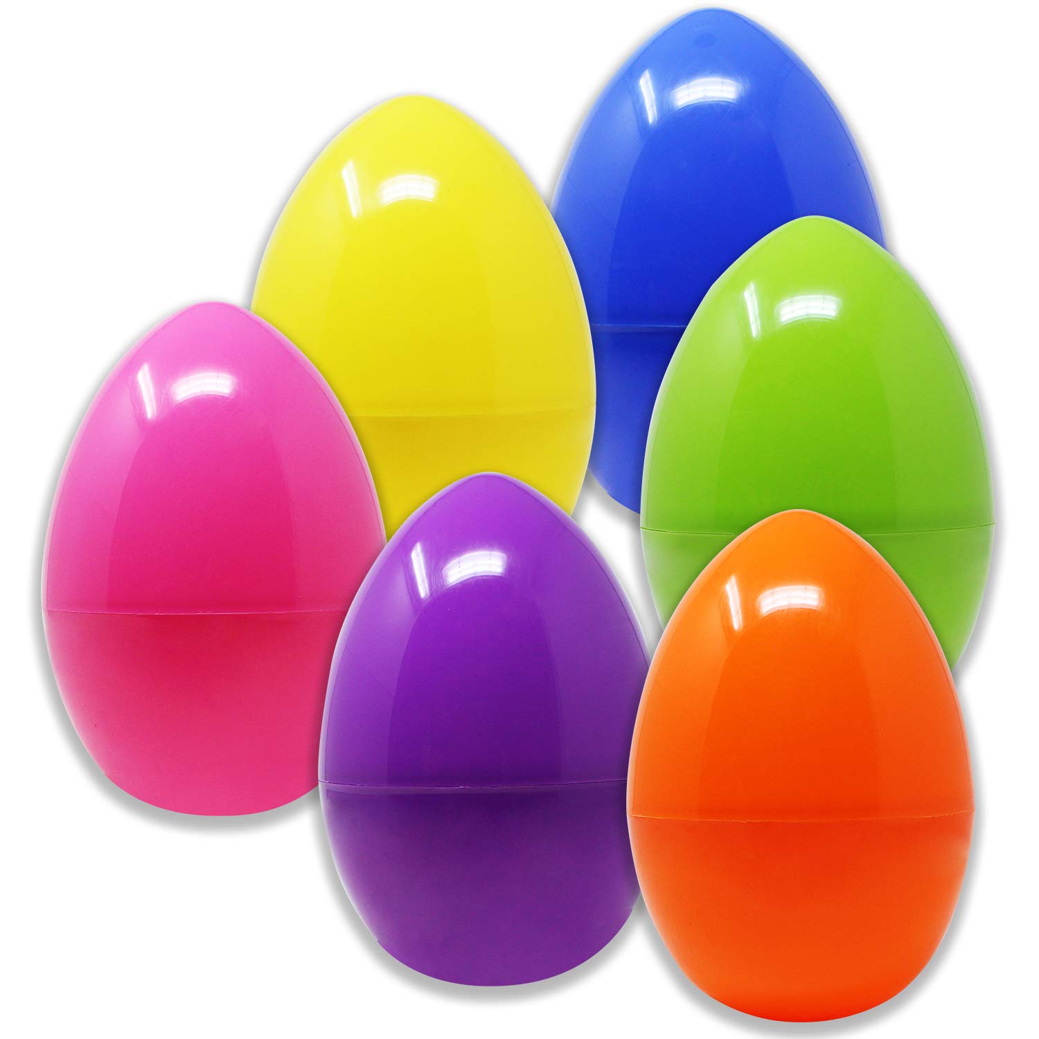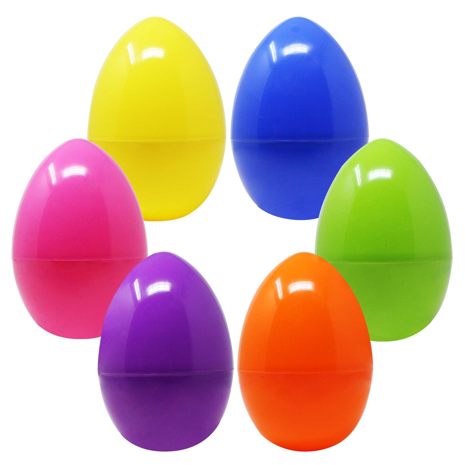 SUPER VALUE PACK. Giant Plastic Solid Colored Easter Eggs includes 6 Pieces Fillable Solid Bright Color Easter Eggs in Orange, Yellow, Green, Blue, Pink and Purple. Fill Them with all Surprises and Treats.