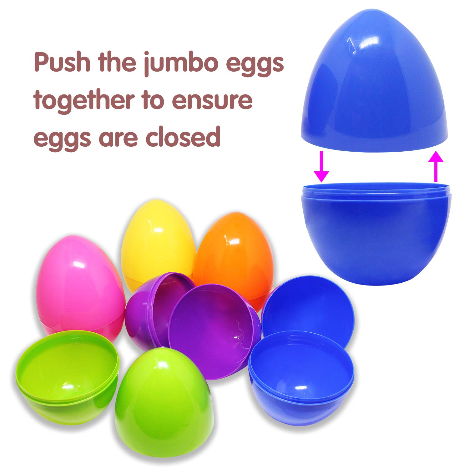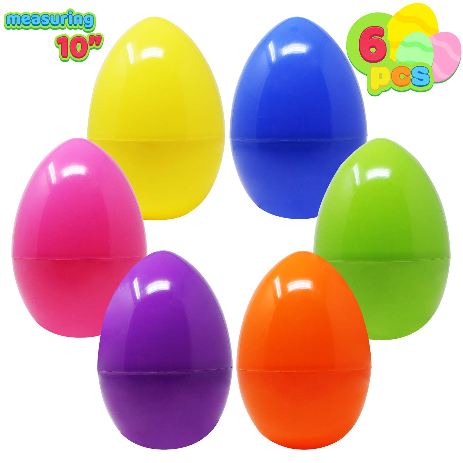 6 Pcs 10” Jumbo Plastic Bright Solid Easter Eggs Assorted Colors for Kids Basket Stuffers Fillers, Easter Hunt Game, Toys Filling Treats and Easter Theme Party Favor