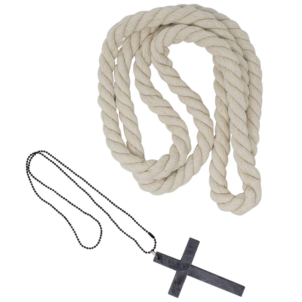 This Monk Costume with Rope Belt and Cross Necklace were made with High and Sturdy Quality. Costume was made with 100 % Polyester and It’s Washable.
