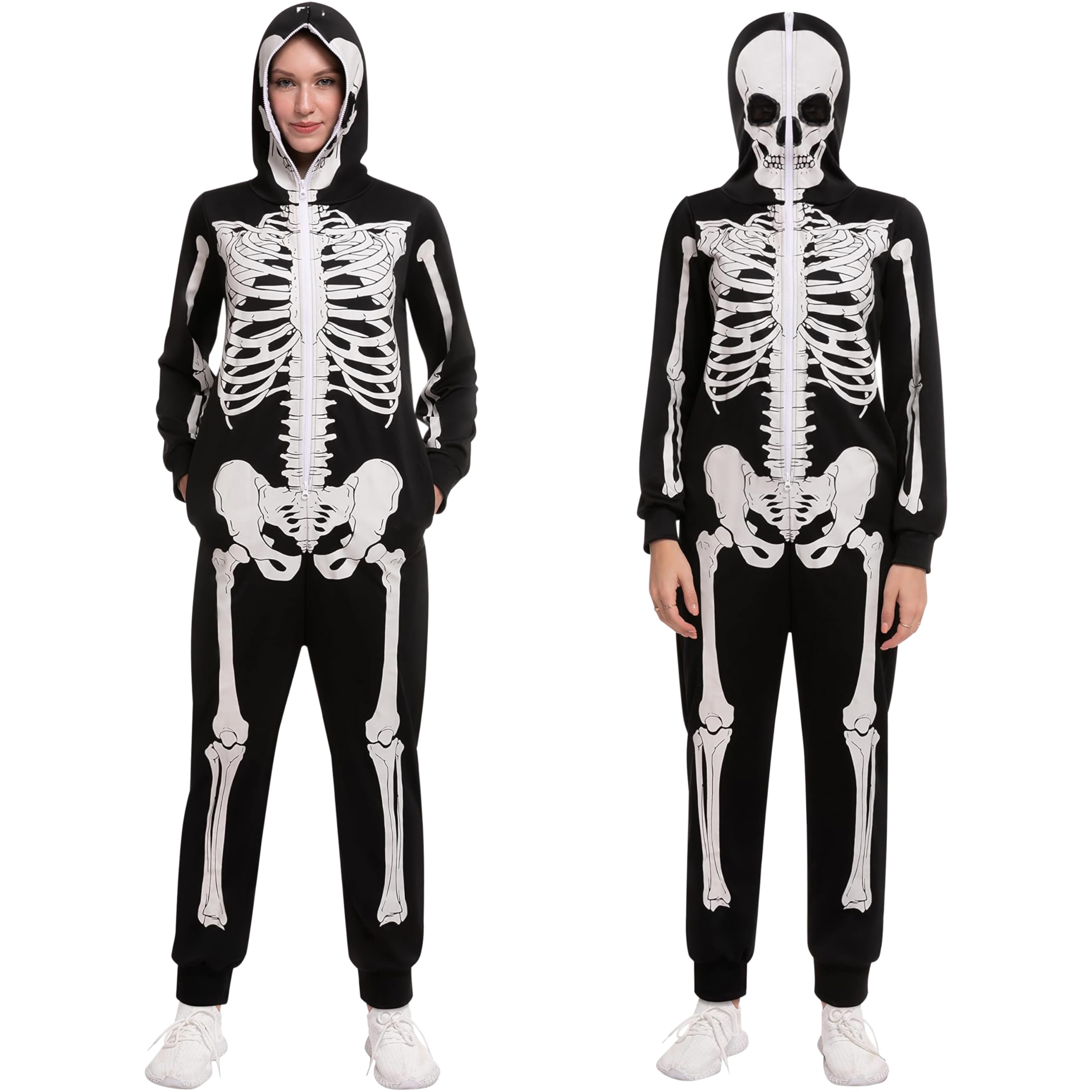 Great for Halloween Costume, Trick or Treat, Themed PartyOur Skeleton costume includes 1 piece of skeleton themed jumpsuit sleepwear pajamas. Features a printed skeleton on the front and the back of the costume and a zipper that goes over the head. Easily wear the costume and get undressed.Skeleton jumpsuit adult costume for women is perfect for this holiday’s outfit. Creatively designed to match the Halloween celebration while providing that classy yet scary look. Made with durable high quality materials and care. 10% Cotton + 90% Polyester.Super Value for Role Play. Great for Halloween Dress Up Parties, Festivals, Theme Party Costumes, Halloween Costume, skeleton costume, and More.Hand Wash Cold. Line Dry. Do Not brighten. Safety Test Approved. Easy to Wear, Unique Halloween Costume for cosplay event, Halloween Trick or Treat Party Dress Up, birthdays, and many more . Instaworthy Halloween Costume Contest Idea! Add Lots of Fun to Your Halloween Party and Other Theme Activities!