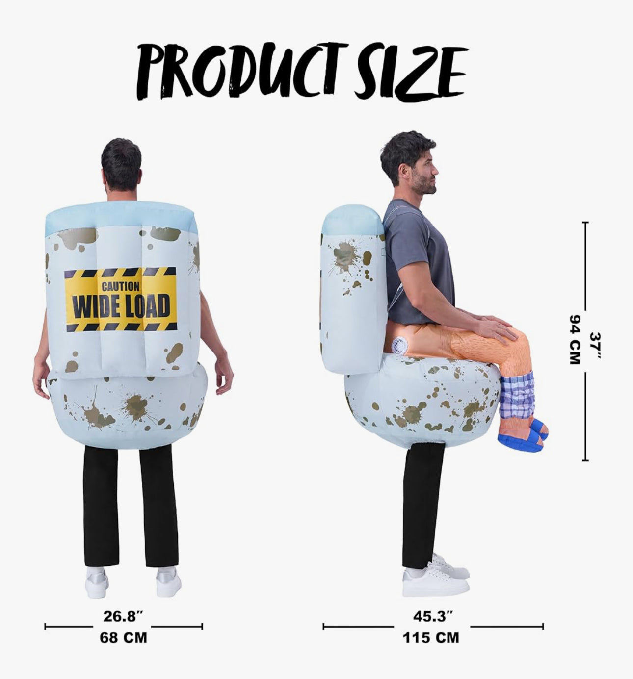 - Complete Set: Our deluxe inflatable costume set includes 1 inflatable suit, 1 inflatable tool, 1 detailed instructions sheet and 1 portable power box (requires 4 AA batteries, batteries not included in the set). It features hairy legs, feet in slippers, peeled off plaid shorts, big water tank, funny and unique image that will definitely stir up laughter at your parties.
