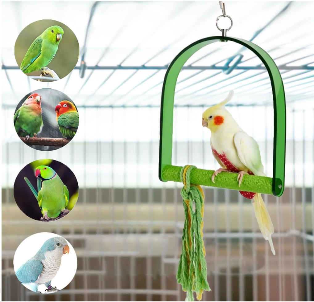 - Material: bird swing is made of acrylic and wood with a food-grade color on the inside for birds to play and chew safely, beautiful and durable.