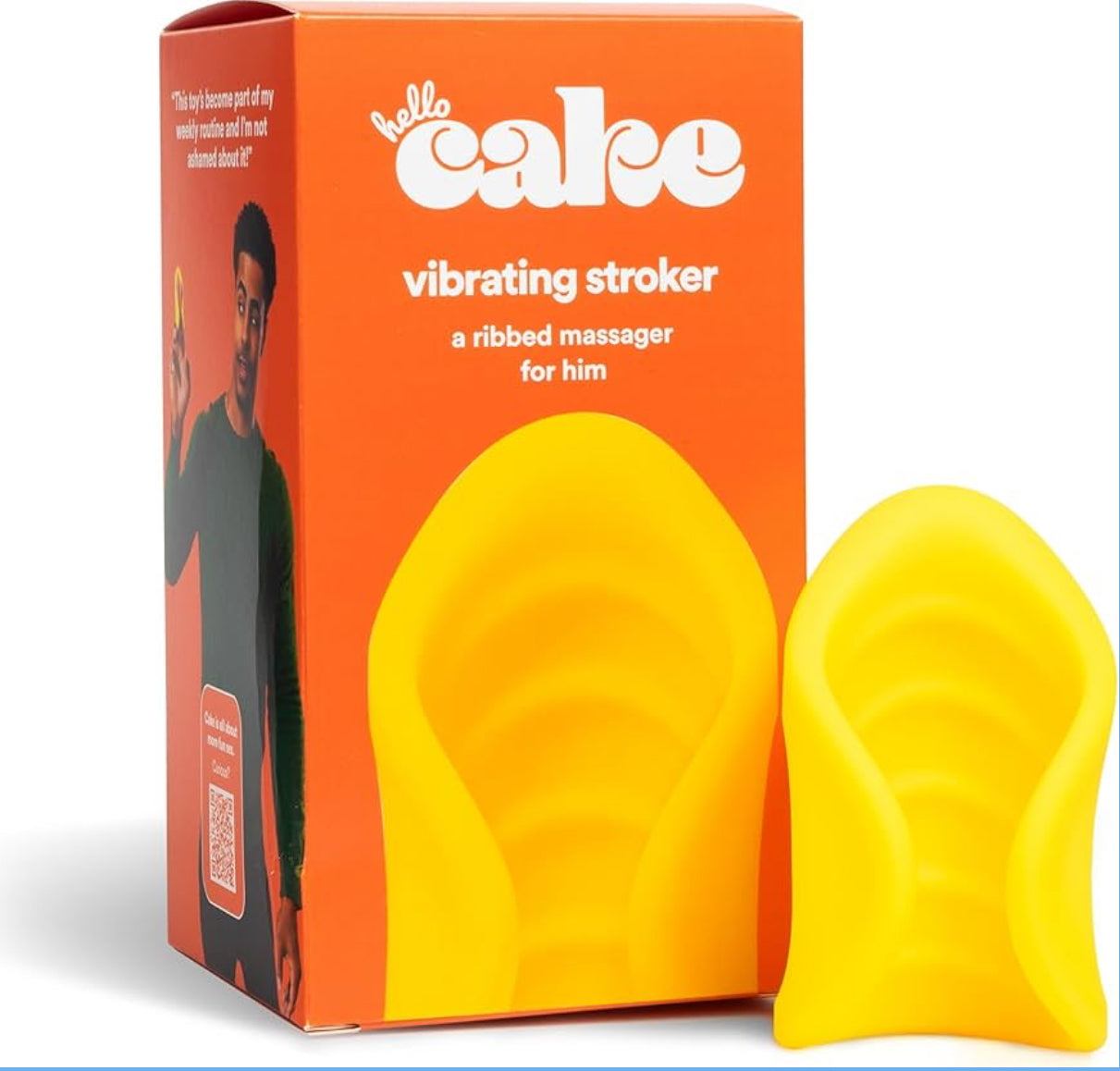 Hello Cake Vibrating Stroker - Male Masturbator with 10 Vibration Modes - Ribbed Texture for Extra Sensation, Removable Bullet Vibrator Included - Adult Sex Toy for Men and Couples