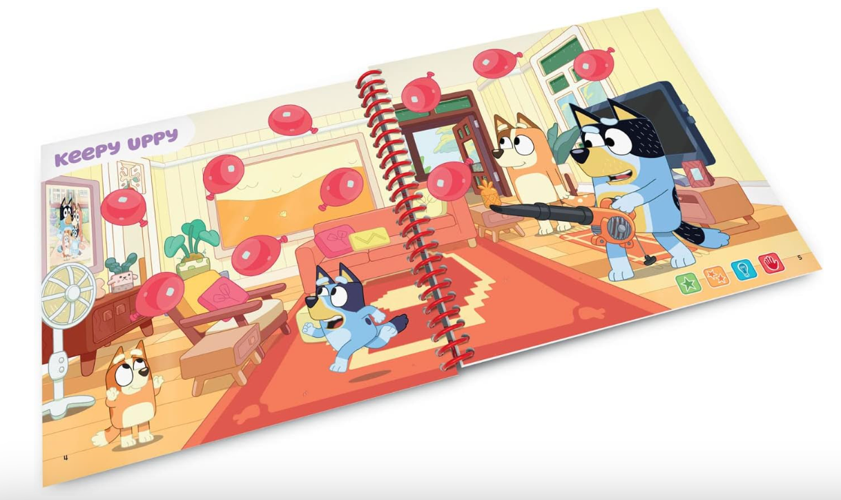 - Play games from popular episodes for real life in this activity book; match Bluey’s poses, use the magic asparagus, enjoy a round of Keepy Uppy and more