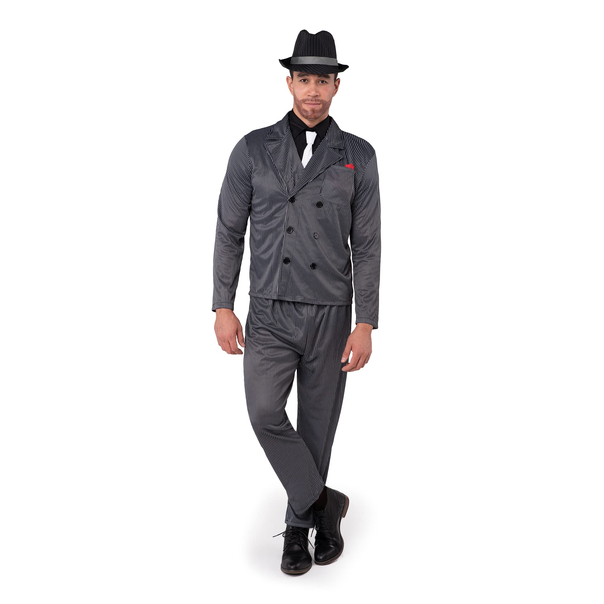 Cool Gangster Outfit. Get ready to rule the underworld dressed in this excellent Gangster Outfit! This costume set will have you really looking great and attractive during your Halloween Costume Party! This is made Super Durable with Higher Quality. The material is made out of 100% Polyester.