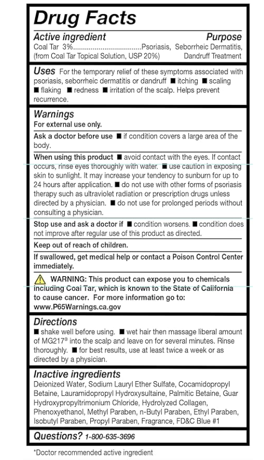 - MG217 Dandruff Coal Tar shampoo is therapuetic and medicated dandruff shampoo that soothes, repairs and protects hair