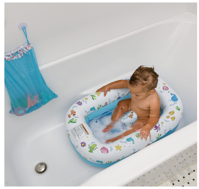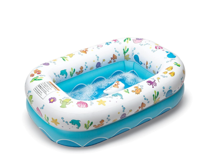 - BABY BATH ESSENTIALS: Dive into bath time with Mommy's Helper's Inflatable Baby Bathtub, showcasing a charming under the sea design. This portable baby bath tub boasts an anti-sliding saddle horn bath seat, ideal for babies aged 6 to 24 months.