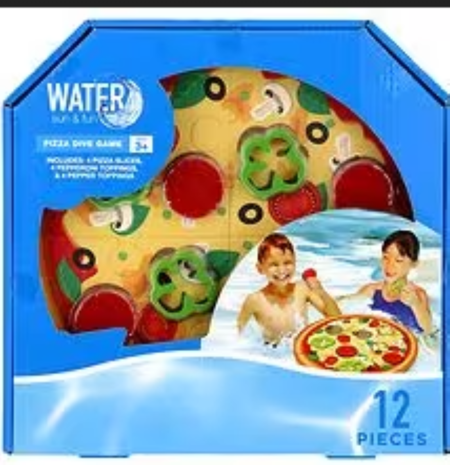 Add some fun to your summer with the Water Sun & Fun Pizza Dive Game! This colorful set includes 12 pieces that will keep children entertained for hours. Perfect for use in the lake or pool, this toy is made of durable plastic to withstand rough play.