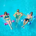 - This allows your body to be partly submerged in the water while keeping your head and knee afloat. This is perfect for swimming pool games, pool floats, pool toys, floaties, party favors, summer-themed parties, family games, activities.