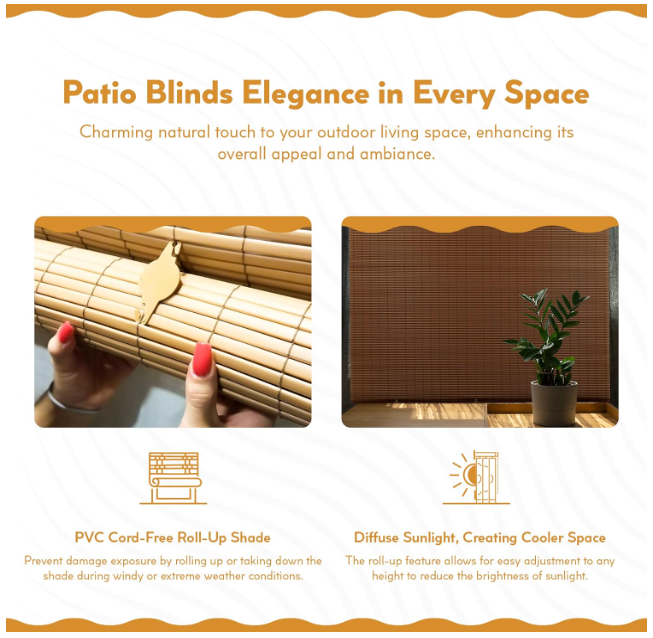 - WATERPROOF - Define your outdoor patio or porch with our waterproof shades and PVC blinds.