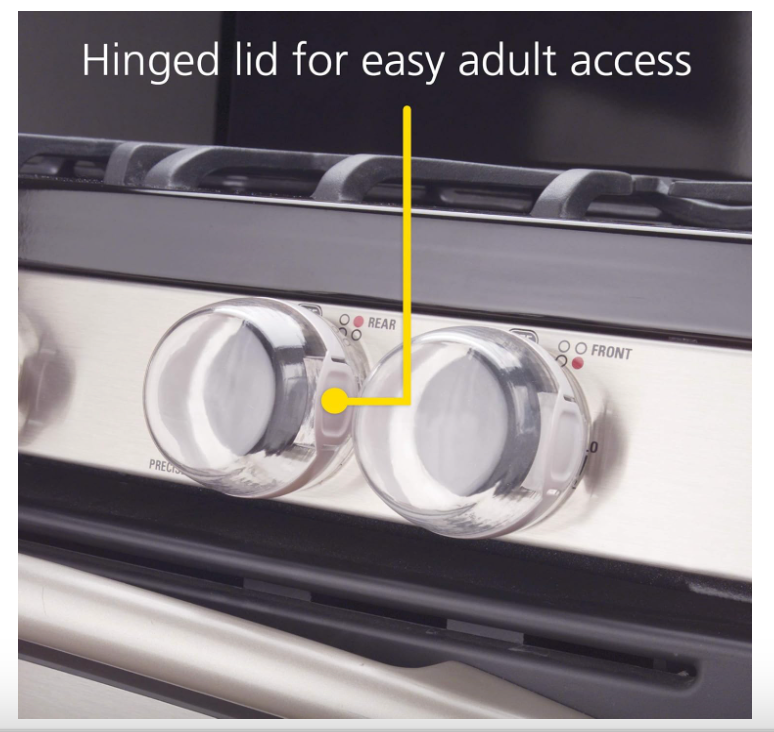 - These clear Safety 1st plastic covers install easily and fit over your stove knobs to keep children from turning them. Simply pop open the cover's hinged lid to access the knob when it's time to cook.