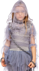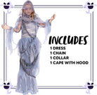 Spirit Gray Ghost Costume includes Tattered Dress, Chain, Collar, and White Cape with Attached Hood