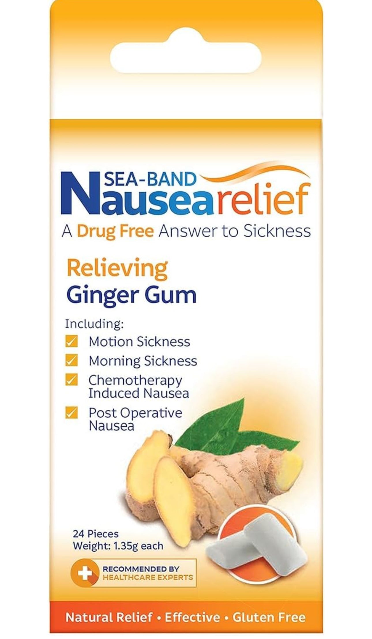 Sea-Band Anti-Nausea Ginger Gum For Motion & Pregnancy Morning Sickness, 24 Count BB:2/25