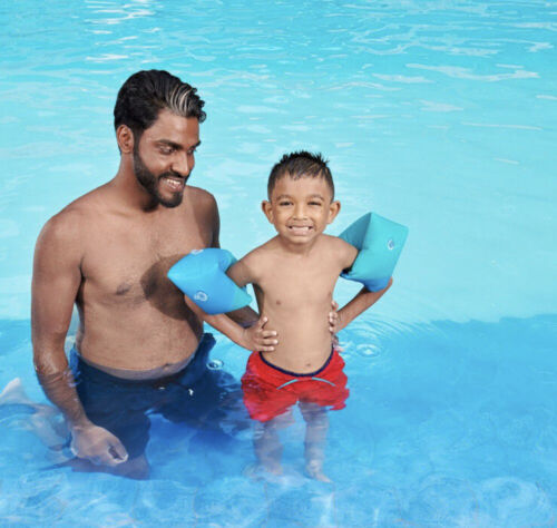 Perfect for training aids during swimming sessions, these SwimWays Blue/Teal Swim Arm Floats are a must-have for any parent. They are perfect for water sports enthusiasts and would make a great gift.