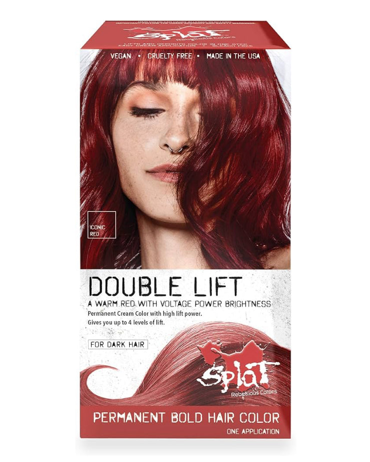 Splat Iconic Red Double Lift Permanent Hair Dye Kit, 1 Application, Includes Red Hair Color, Developer, Concentrate, Conditioner, Gloves, Processing Cap & Instructions, Vegan & Cruelty Free