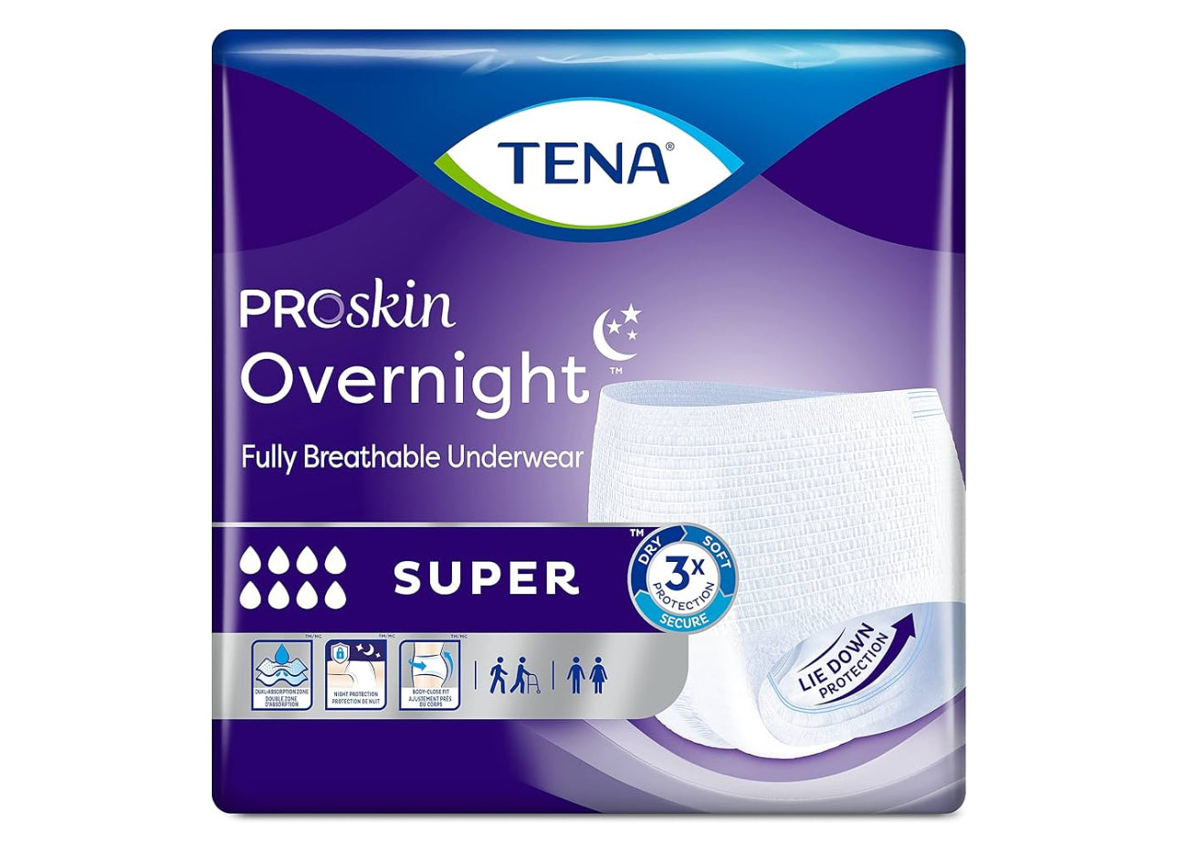 TENA ProSkin Overnight Medium Unisex Adult Super Absorbent Disposable Incontinence Underwear, 14 Count