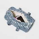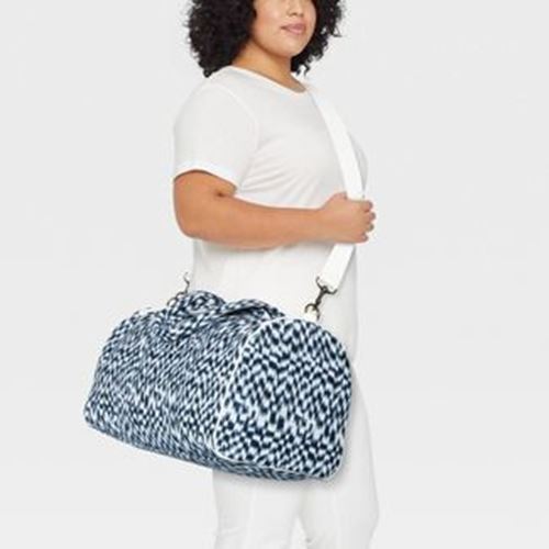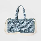 Get ready for the gym, a weekend trip or anywhere else you go in convenient style with the Jacquard Print Olivia Shoulder Handbag from Universal Thread. This shoulder handbag features a jacquard print in white and blue hues and is shaped like a duffle bag, making it a stylish addition to your accessory collection. Designed with interior pockets, this unstructured handbag provides enough space for your cell phone, pouch and more, and the zipper closure helps keep things secure. Best of all, with the convenient white shoulder strap, you can carry the bag with ease.