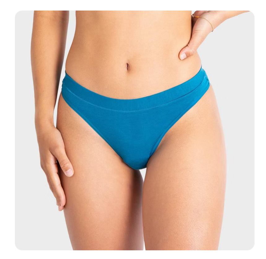 Feels like clouds. Works like whoa. Saalt Wear is ultra-comfortable absorbent underwear designed to completely replace pads and liners with built-in protection that absorbs periods, bladder leaks, sweat, discharge, and other leaks. Our patent-pending gusset technology wicks away moisture into a moisture-locking absorbent layer to keep you feeling (magically) dry. Introducing the most comfortable, softest thong you’ll ever wear. Trust us, this will be your new everyday go-to! Perfect for your lightest leaks, sweat and discharge, or as a worry-free backup to a cup, disc, or tampon. Made from soft-stretch TENCEL™ Modal, aka unbelievably soft fabric made from sustainably regenerated cellulose fiber that comes from renewable beech wood.