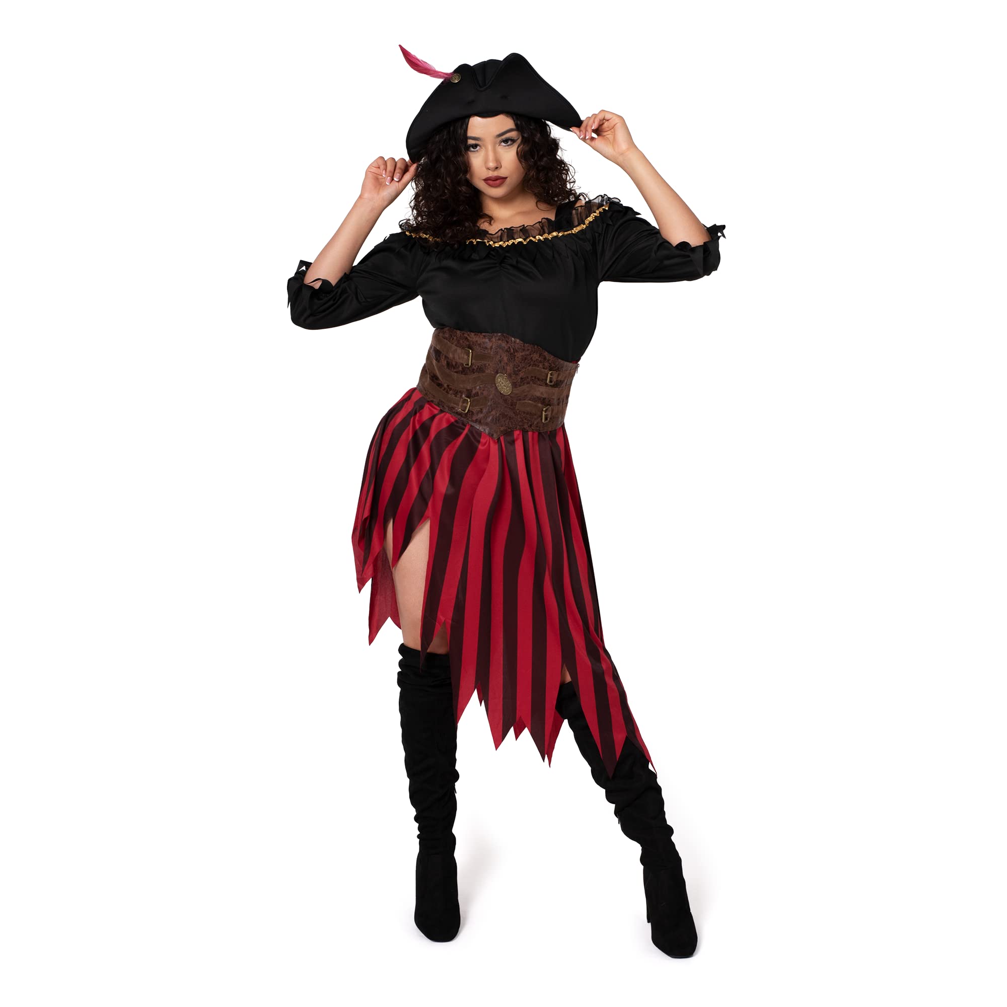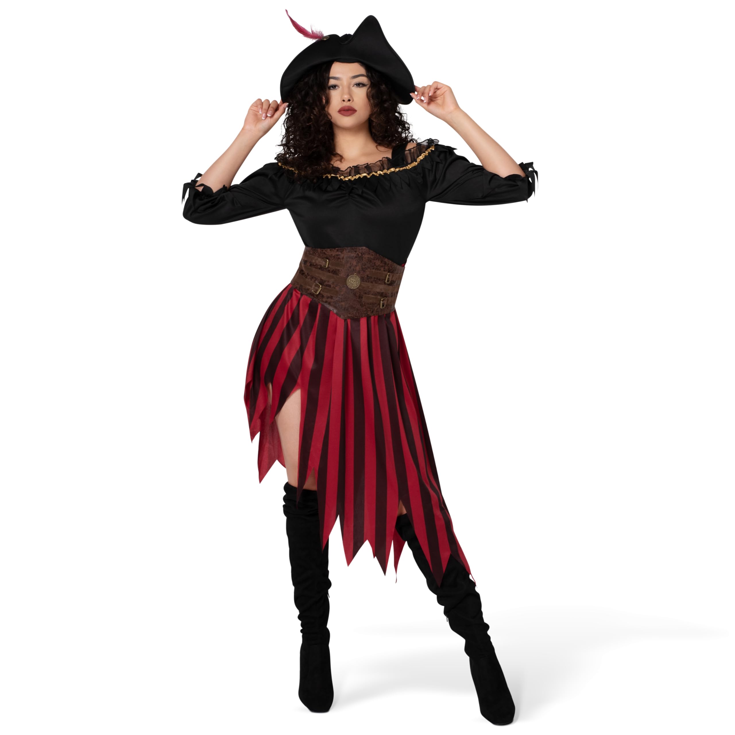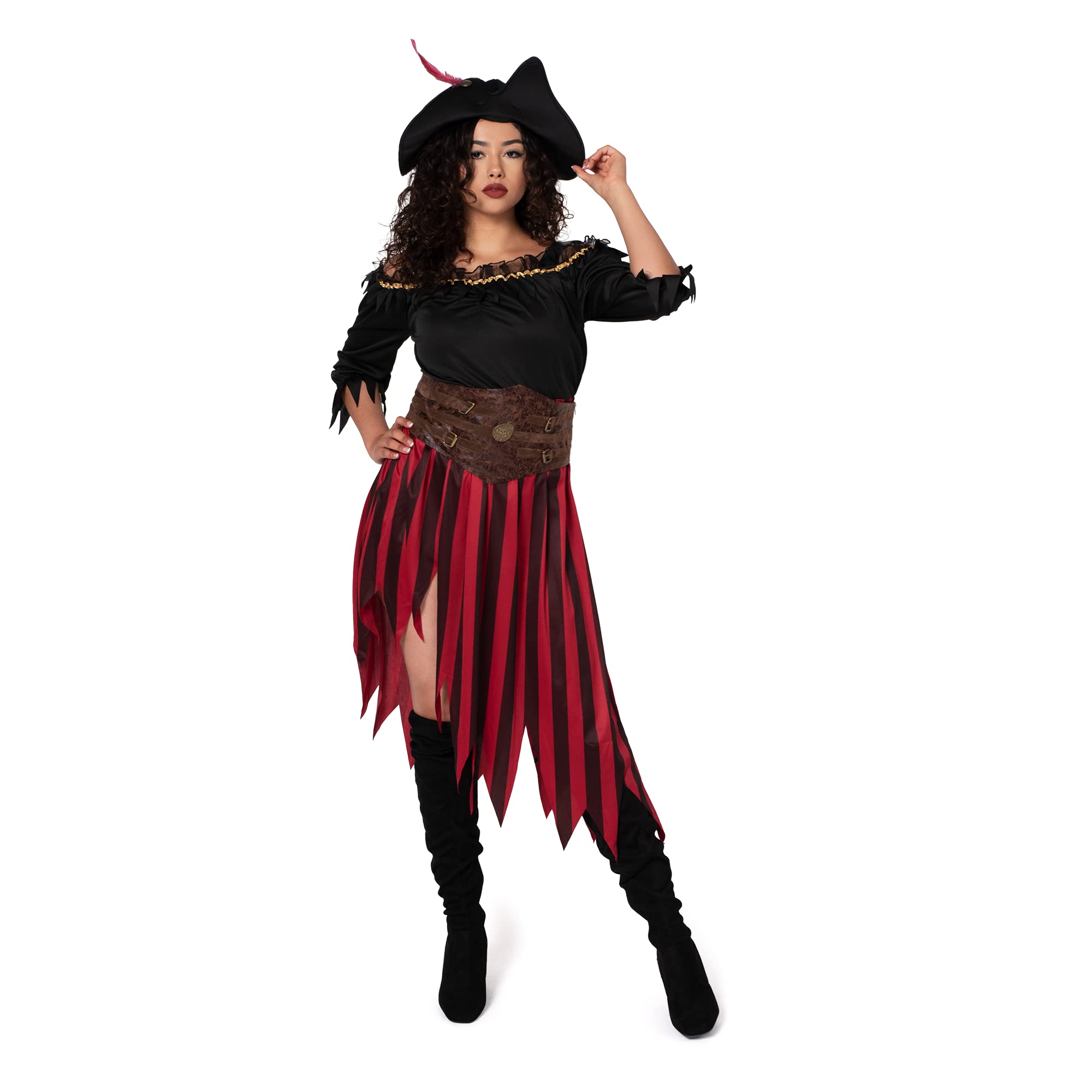 SUPER VALUE PACK. This Pirate Costume for Women is an astounding way to make your Halloween night a haunting experience no matter where you’re headed. Our sea queen costume includes one Shoulder-less vest top, one skirt, one belt, and one hat. Wear this women’s Halloween costume to a masquerade ball or as the perfect disguise at a haunted house.
