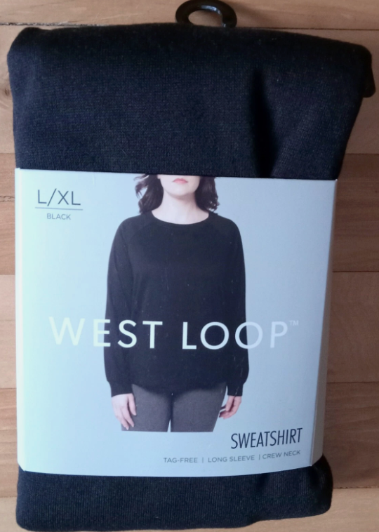 Women West Loop Sweatshirt Scoop Crew Neck Long Sleeve Shirt Black, S/M & L/XL