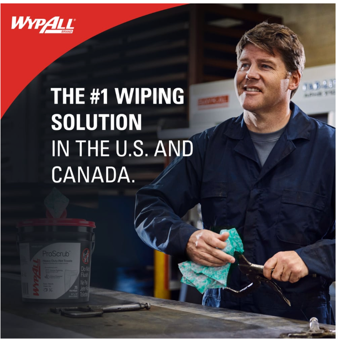 Don't settle for anything less than the pros' scrub, ProScrub™. No matter how dirty the job, you can rely on WypAll® PowerClean™ ProScrub™ Heavy Duty Wet Towels to rapidly clean up hands, tools and work surfaces. Its abrasive side quickly lifts up sticky, heavy grime with ease, while its smooth side ensures nothing's left behind. Whether you're in Metals/Mining, Oil/Gas, Electric, Plumbing, Construction or Auto Repair, count on ProScrub™ wipes with their powerful citrus cleaning formula to quickly get your hands and tools ready for the next challenge. WypAll® PowerClean™ ProScrub™ Heavy Duty Wet Towels are made in the USA (of U.S and/or non-U.S. materials). As an added benefit, this product is eligible to be recycled via Wipes Recycling through RightCycle™ by Kimberly-Clark Professional™, the first manufacturer-led wipes recycling program (when used in non-hazardous applications as classified by federal, state, and local regulations). WypAll® PowerClean™ ProScrub™ Heavy Duty Wet Towels are a trusted tool to help you get the job done right.