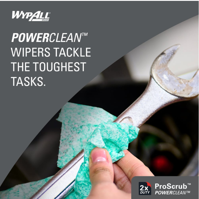 - 50 Sheets/Canister; 8 Canisters of WypAll® PowerClean™ ProScrub™ Heavy Duty Wet Towels/Case; 400 Sheets/Case; Green and White; Dual Action Cleaning; Large 9.5" x 12" Wipes; Wipes & Free Canister